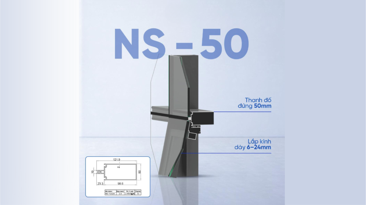 • Hệ mặt dựng Ns-50 hay còn gọi là NS-1600, là dạng mặt dựng được sử dụng phổ biến và có mặt rất sớm trên thị trường, được lắp ghép theo hệ mặt dựng Stick.
